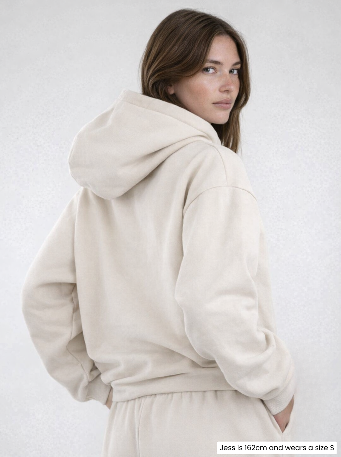 Our signature hoodie and pant set is designed to feel like a calming blanket — slightly weighted like a hug, impossibly soft, and oversized enough to disappear into.